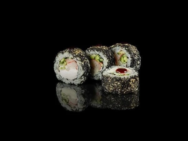 Нори, рис, снежный краб, сыр творожный, огурец, смесь фурикакэ, икра тобико